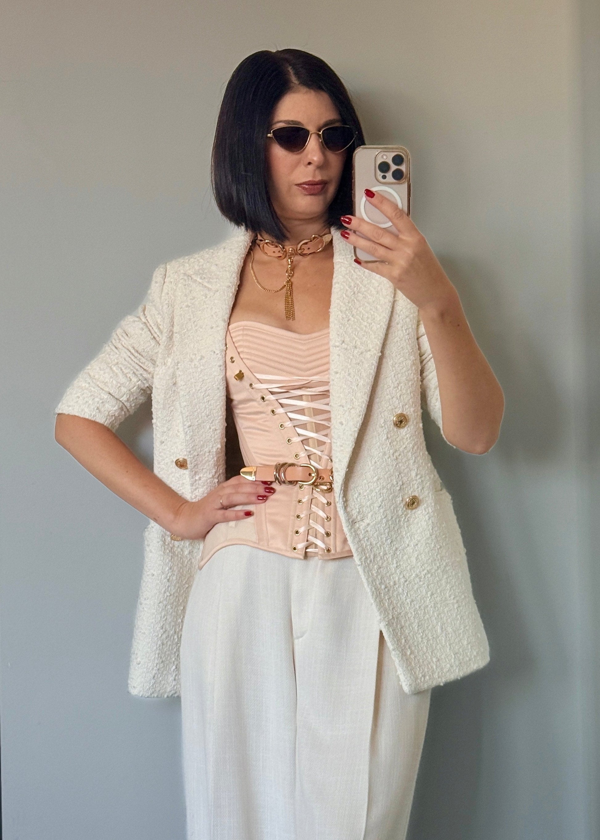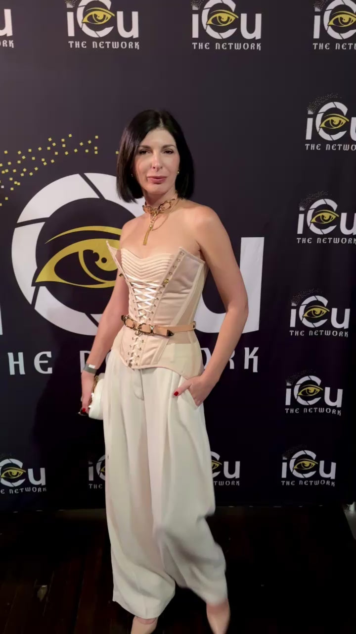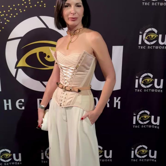 Nude Satin Corset with Decorative Front Lacing